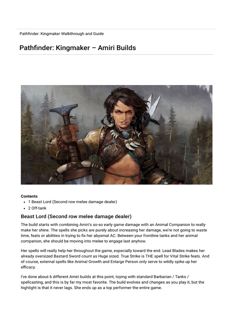 Pathfinder Kingmaker Amiri Builds Neoseeker Pdf Leisure